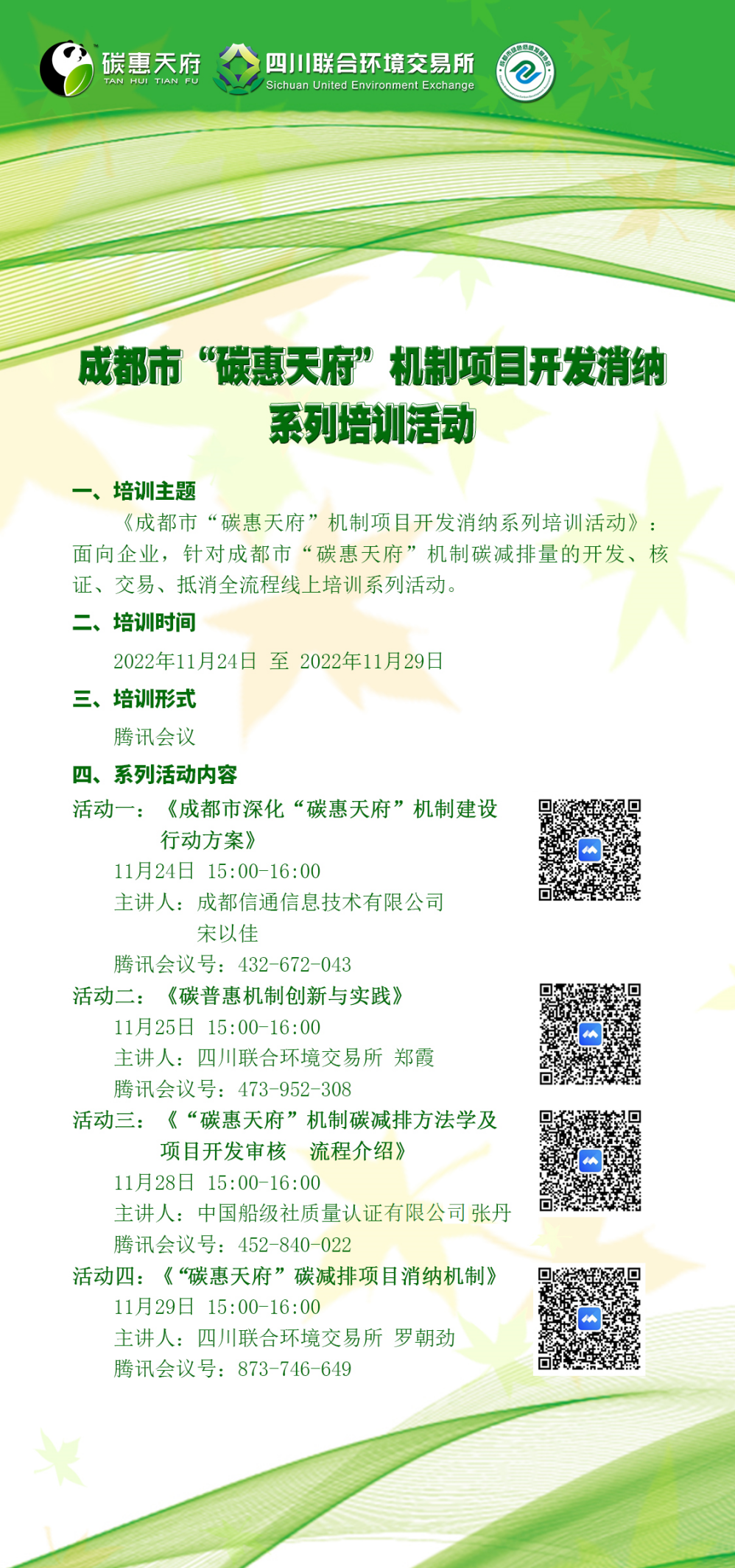 为了让大家更加了解和积极参与“碳惠天府”碳普惠,四川联合环境交易所于11月24日至29日面向公众首次开展成都市“碳惠天府”机制全流程培训活动。