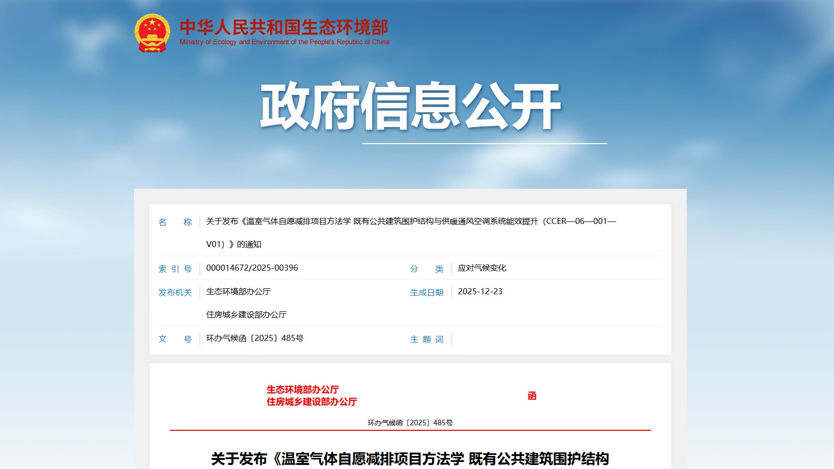 关于发布《温室气体自愿减排项目方法学 既有公共建筑围护结构与供暖通风空调系统能效提升(CCER—06—001—V01)》的通知为实施积极....